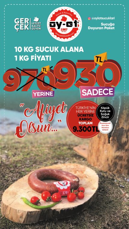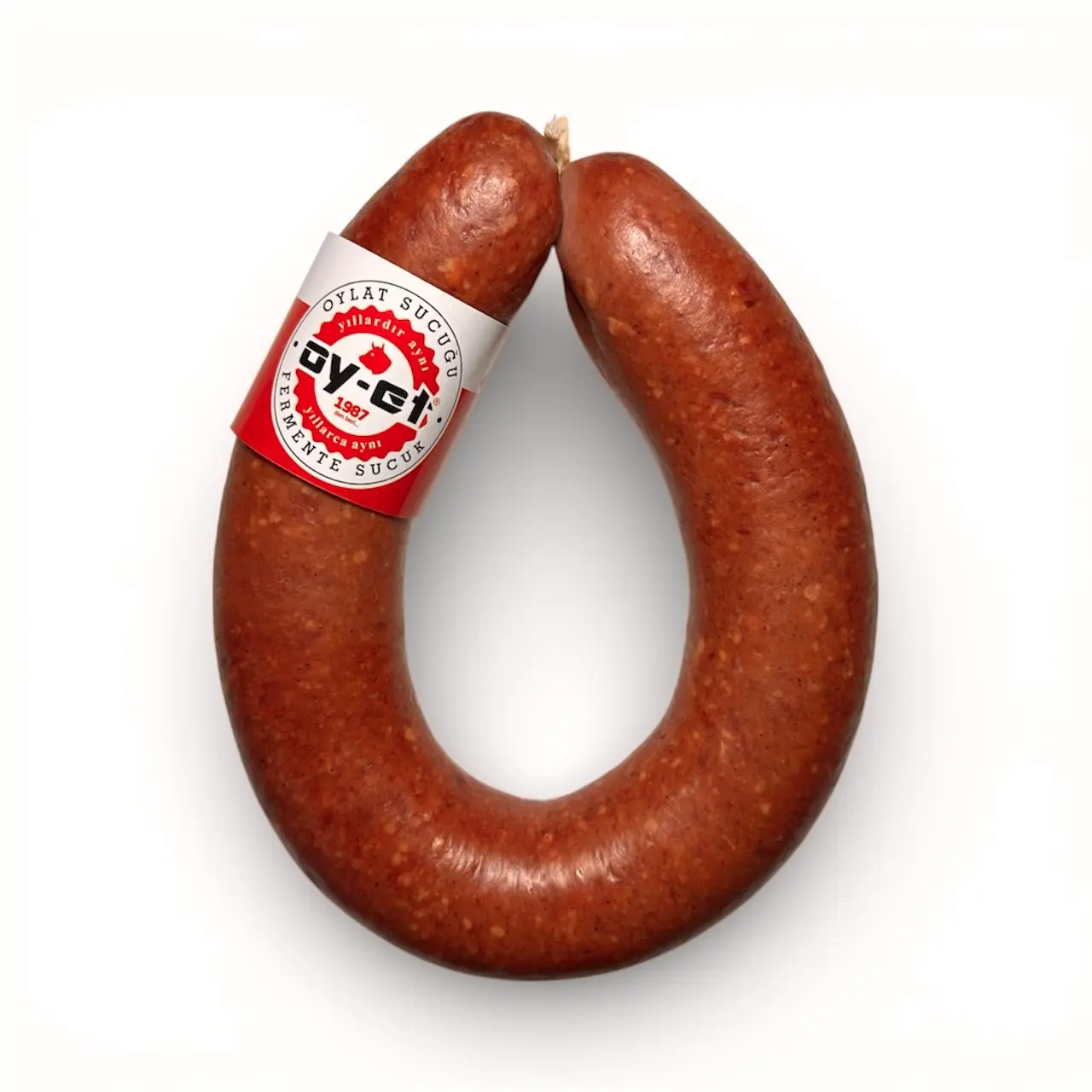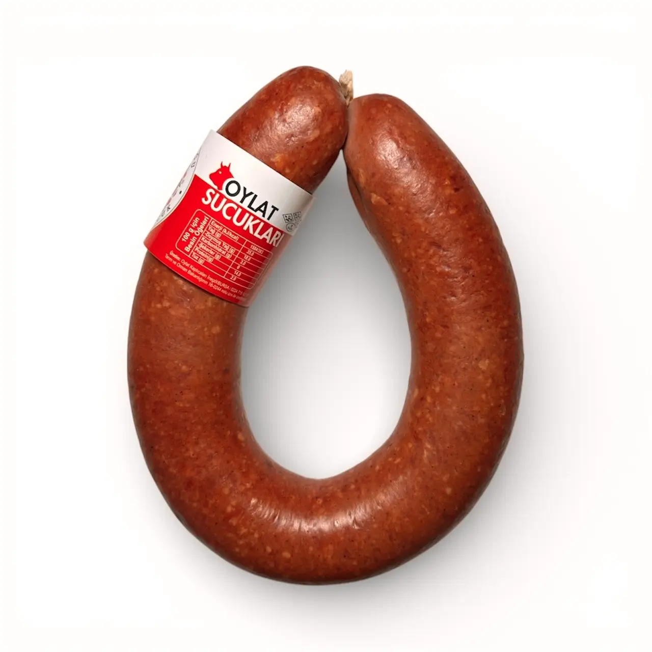 Sucuklarımızda sarımsak tozu değil. Mevsiminde temin edip depoladığımız taşköprü sarımsaklarını kullanıyoruz. En kaliteli baharatları ve etleri 39 yıllık tecrübeyle teker teker harmanlıyoruz. Fabrikasyon değil geleneksel kasap sucuğu üretiyoruz. Fazla baharatlar ile birinci sınıf dana etinin tadını bastırmıyoruz. Isıl işlem fırınlarını değil, doğal fermente kurutma yöntemlerini tercih ediyoruz.Bu sebeplerden dolayı müşterilerimiz , mide yanması ve şişkinlik gibi durumlar ile karşı karşıya kalmıyor. %100 dana etinden üretilen Oylat sucuğuna Oylat kaplıcaları, İnegöl şubemiz ve online sipariş ile oy-et.com üzerinden ulaşabilirsiniz.