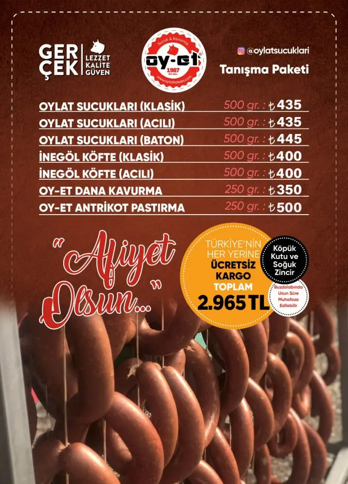 Şube: Kemalpaşa. Mah. İsmail Efendi Cad. No: 21 Oylat Kasabı ve Sucukları İnegöl – Bursa